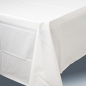 White plastic roll table covers. Use what you need and save the rest. Protects the table and eliminates messy clean-ups. Can even be used for art projects!